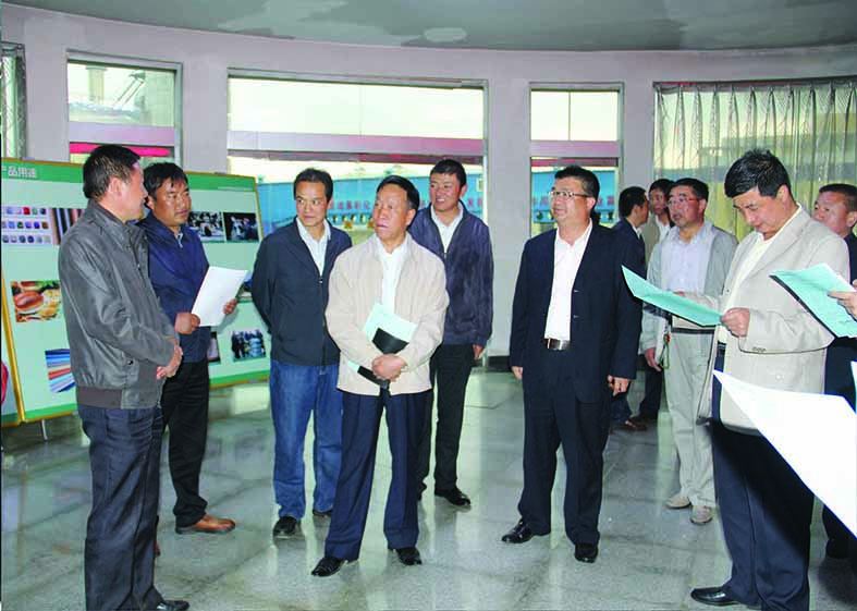 原甘肅省林業廳副廳長陳萬志(中)在原甘南州人民政府副秘書長李世忠(右一),華羚公司總經理敏福祥(后排右二)的陪同下視察華羚公司